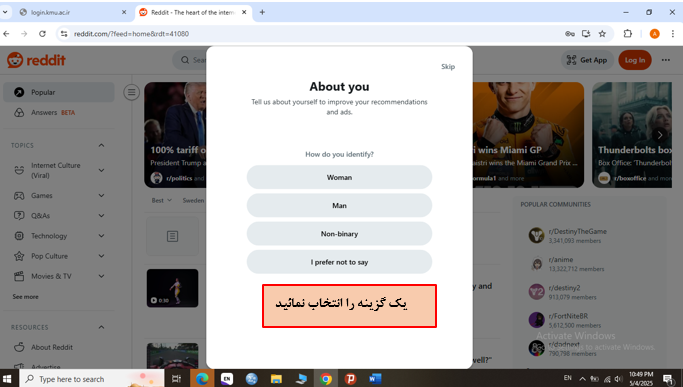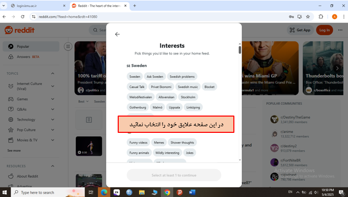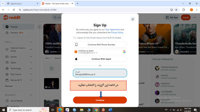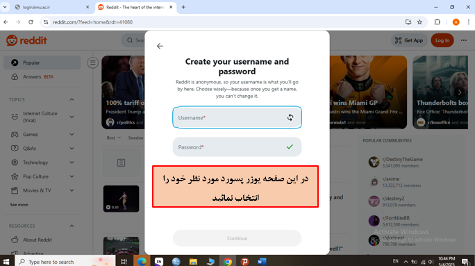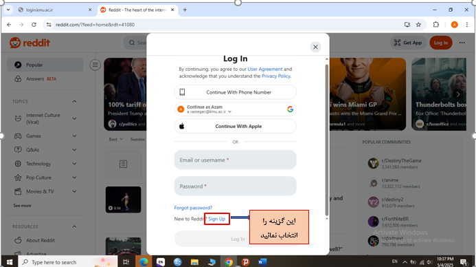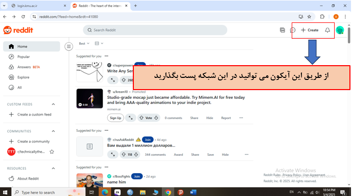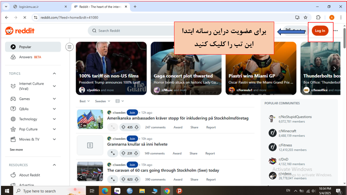 اگر با همه‌ی توضیحات داده‌شده درباره‌ی ردیت، این پلتفرم را مکان مناسبی برای فعالیت می‌دانید، به صفحه‌ی لاگین این انجمن (Sign Up)‌ مراجعه و ثبت ‌نام کنید. پس از انجام مراحل ثبت ‌نام، ردیت پیشنهادهایی برای پیدا‌کردن ساب‌ردیت‌ها و موضوعات مختلفی ارائه می‌دهد که ممکن است به آن‌ها علاقه داشته باشید. اگر از‌ قبل ساب‌‌ ردیتی را می‌شناسید و به آن علاقه دارید، کافی است نام آن ساب‌ردیت را جست‌‌و‌جو و بعد از پیدا‌کردنش، Subscribe کنید.
